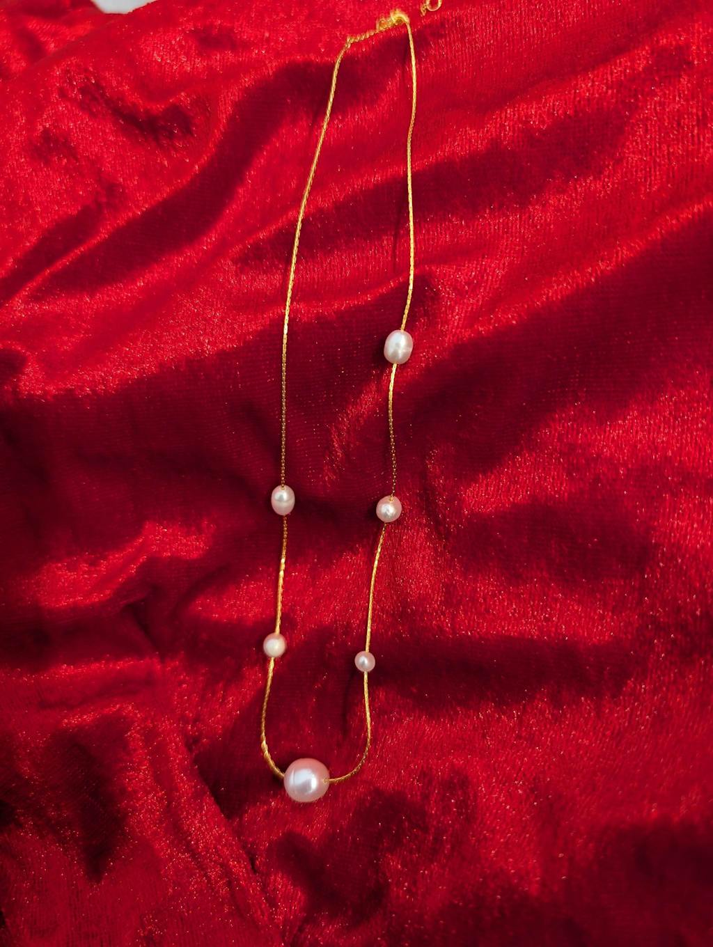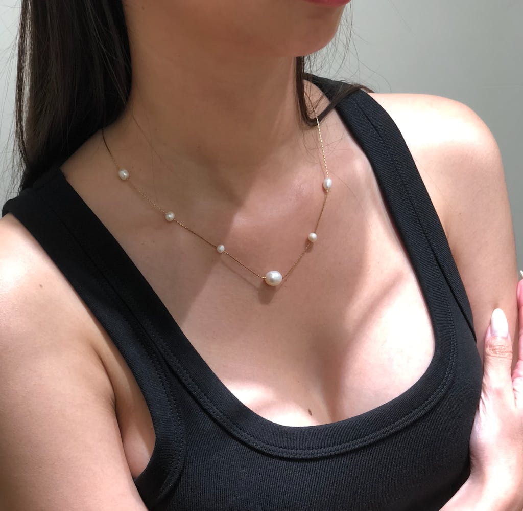 - Design: An ultra-delicate chain adorned with sparsely placed, different-sized freshwater pearls for a minimalist look.