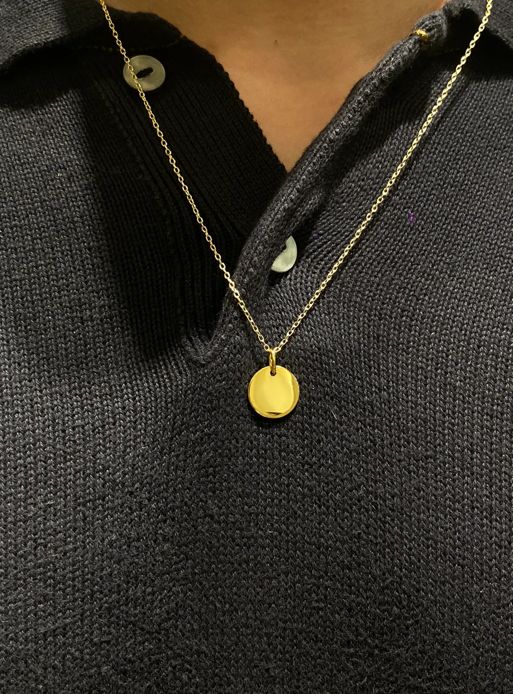 - Design: A classic, unisex cable chain necklace with a polished, charm ready for engraving.