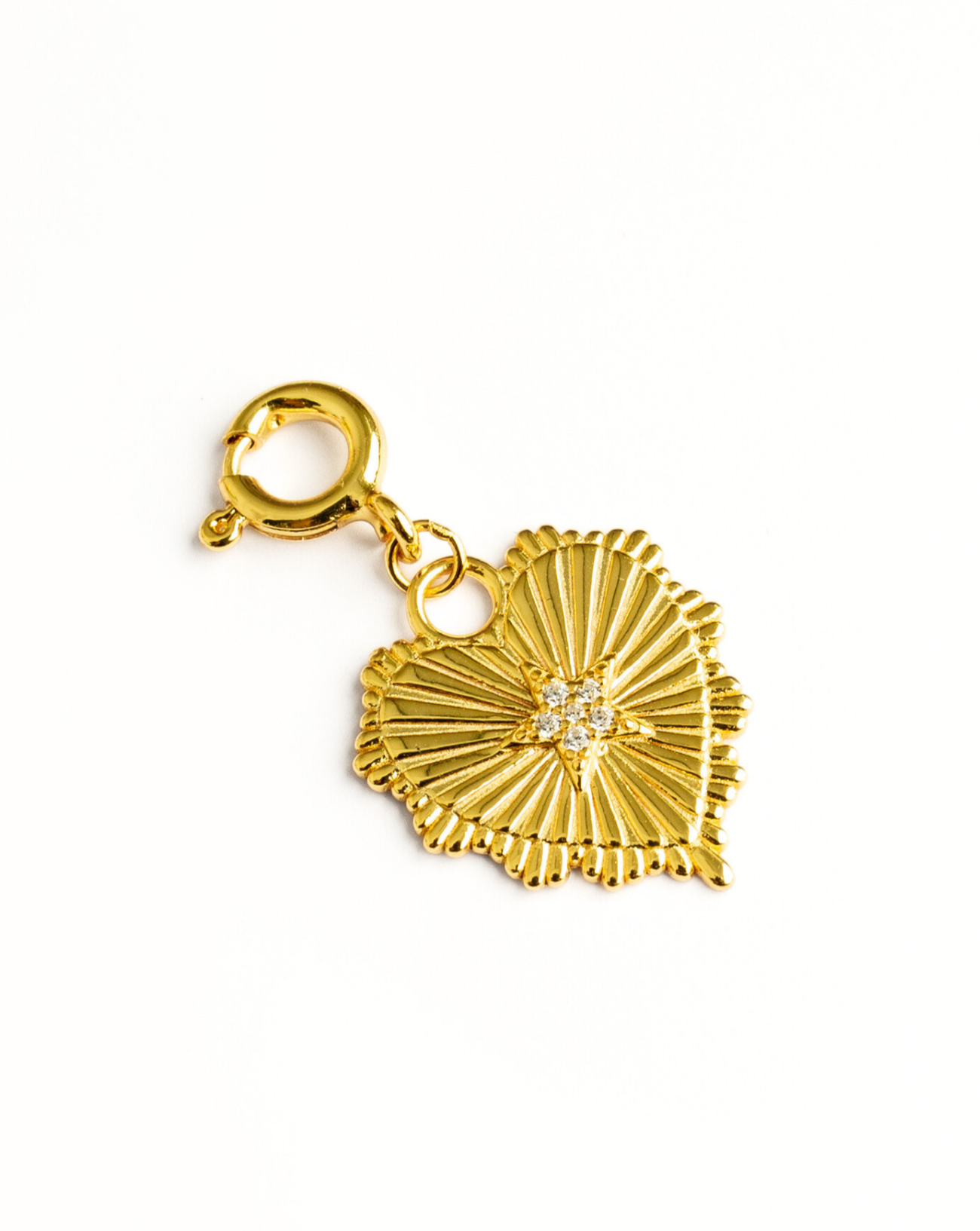Capture a heart full of starlight. This enchanting charm features a unique, textured stardust finish, with brilliant CZ stones scattered like stars in a galaxy. It’s a magical and deeply romantic symbol, ready to be engraved with a message as infinite as your love.