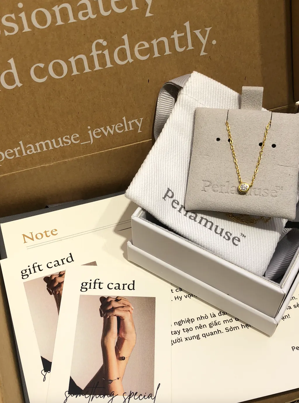 Includes a jewelry gift box, travel pouch, cleaning cloth, thank you card, and an exclusive brand brochure.