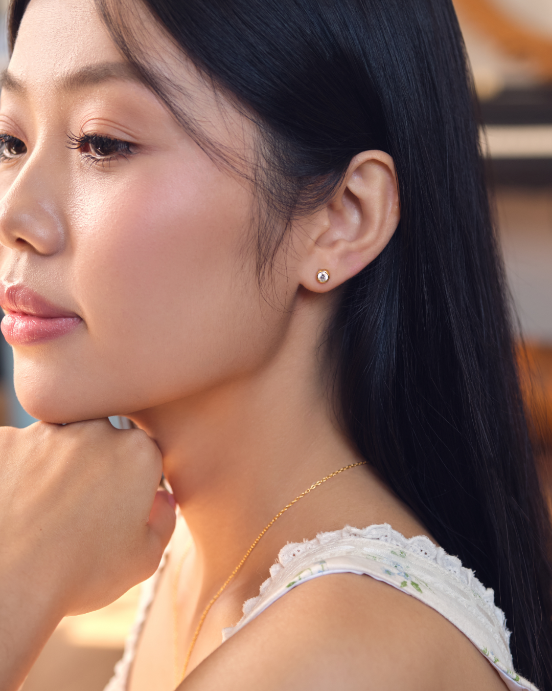 Mình đeo em này gần 2 tháng rồi mà màu vẫn sáng như mới, không bị xỉn dù mình hay tiếp xúc nước. Thiết kế nhỏ gọn nhưng sáng bừng cả gương mặt, đeo ngủ cũng không cấn hay đau. Mình thuộc nhóm da nhạy cảm mà không hề bị kích ứng. Đóng gói siêu chỉnh chu, nhận được hộp còn thơm mùi nước hoa nhẹ. Highly recommend cho ai mê sự tối giản