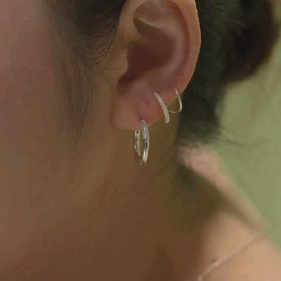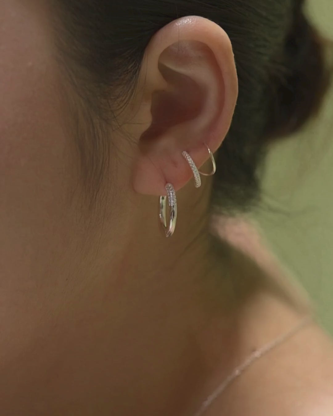 - Design: A bold huggie hoop featuring multiple rows of pavé-set stones for maximum sparkle.