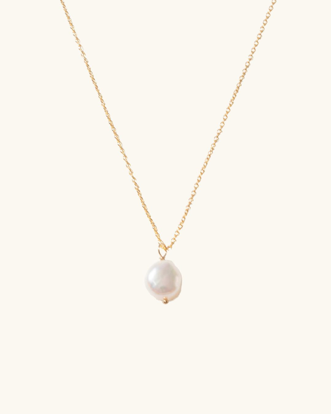 - Design: A classic solitaire necklace featuring a single, dangling freshwater pearl on a delicate chain.