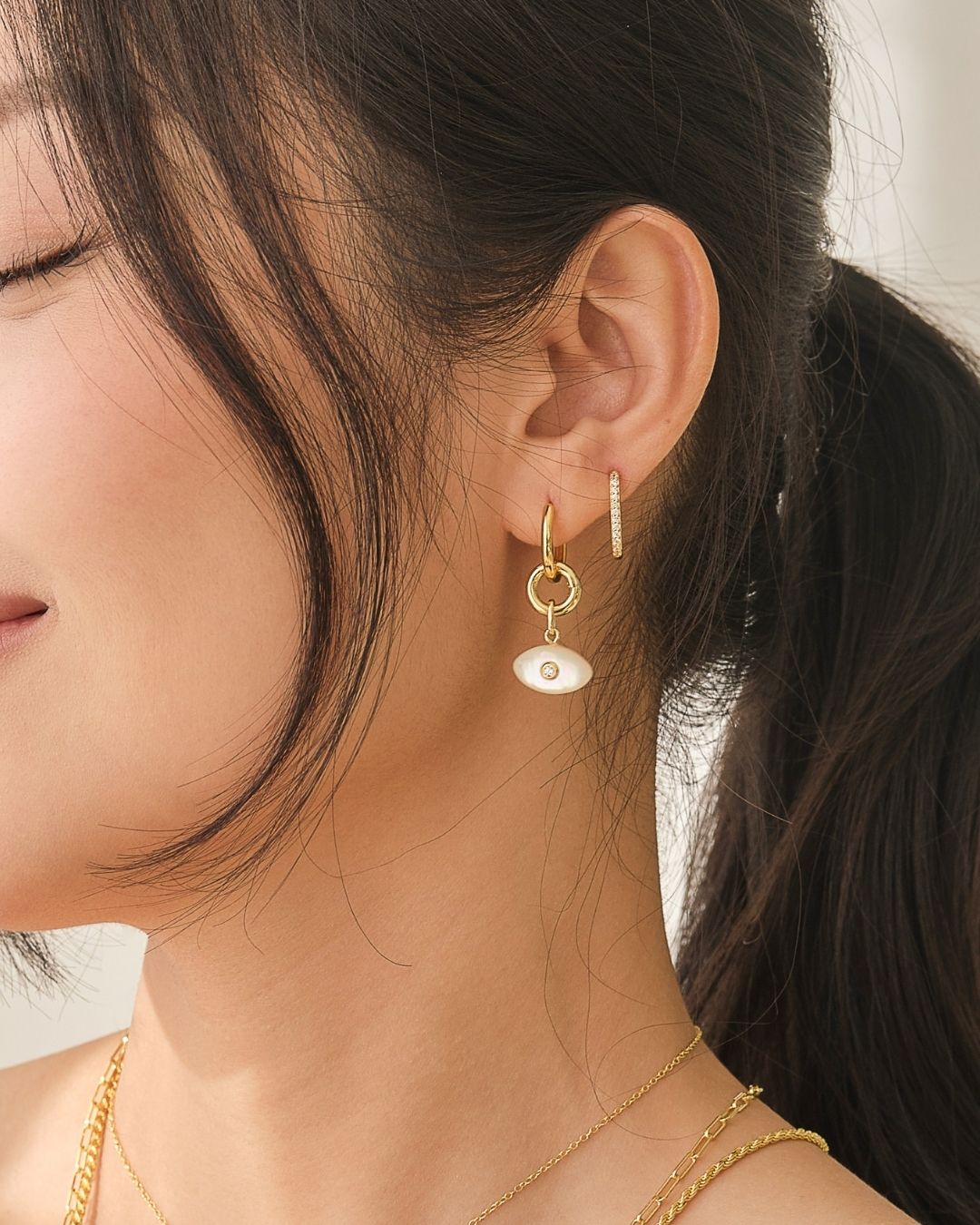 A symbol of protection, reimagined with modern elegance. Our Evil Eye charm is crafted from luminous mother of pearl to watch over you with a gentle, pearlescent gaze. Add this meaningful talisman to your favorite chain to carry good energy with you, wherever you go.