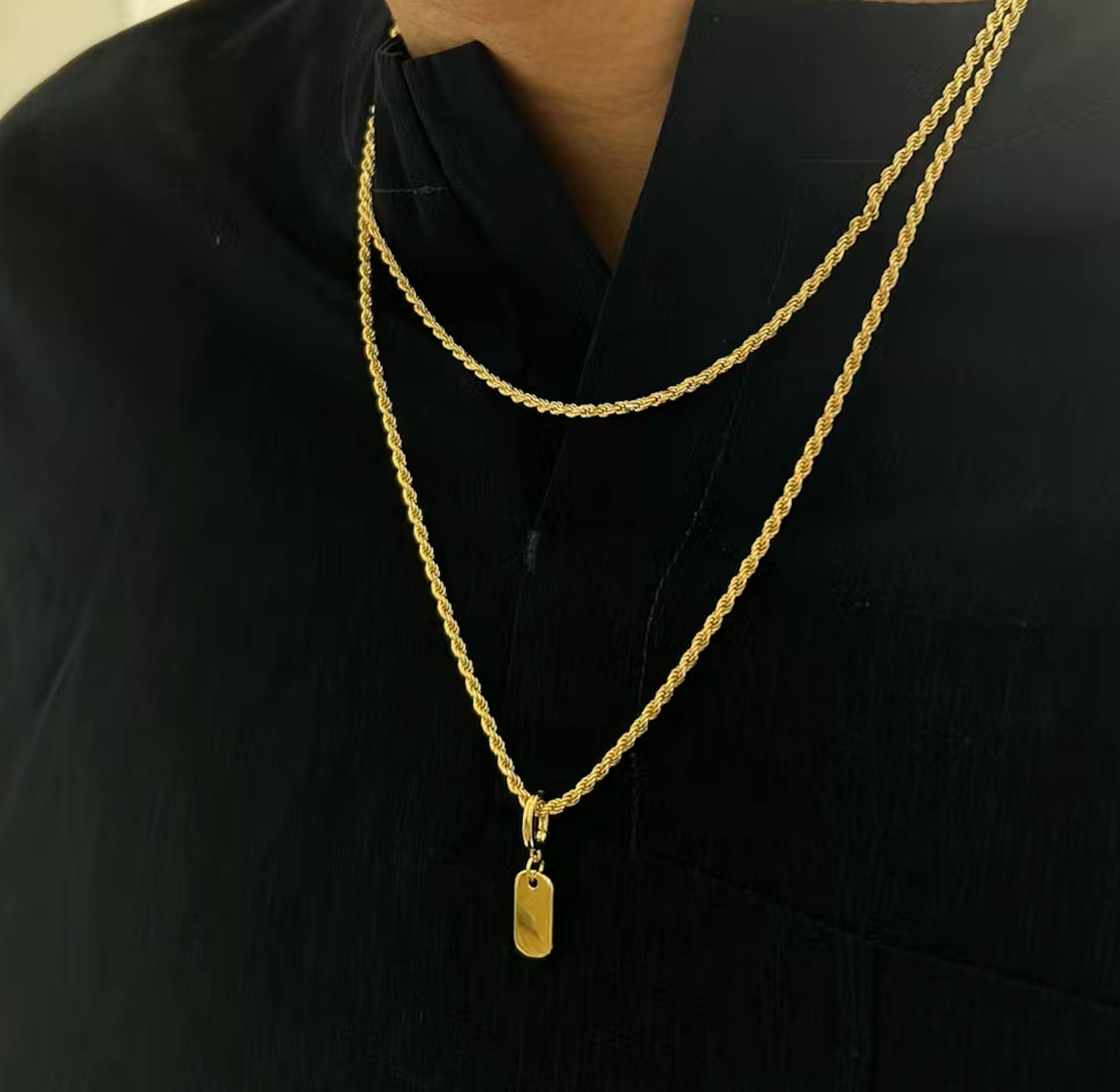 A timeless staple, reimagined with beautiful texture. Our Rope Chain is intricately woven to catch the light from every angle, creating a look of luxurious dimension. It's a statement of effortless confidence, perfect for wearing solo or as a bold foundation for your favorite pendant.