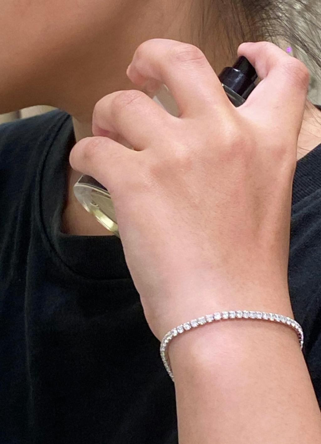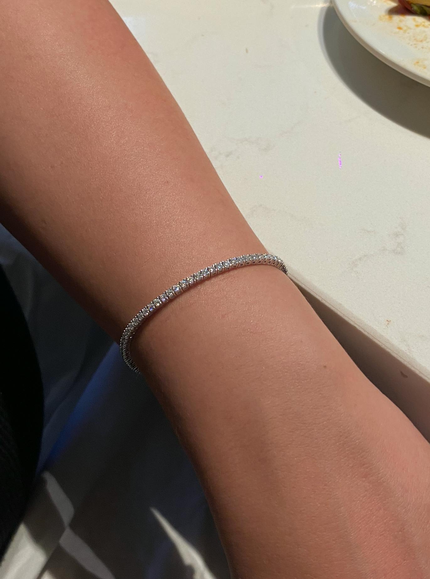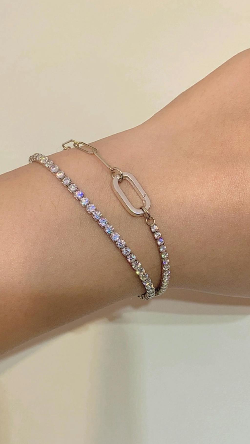 - Design: Slim chain bracelet with evenly set stones that sparkle around the wrist