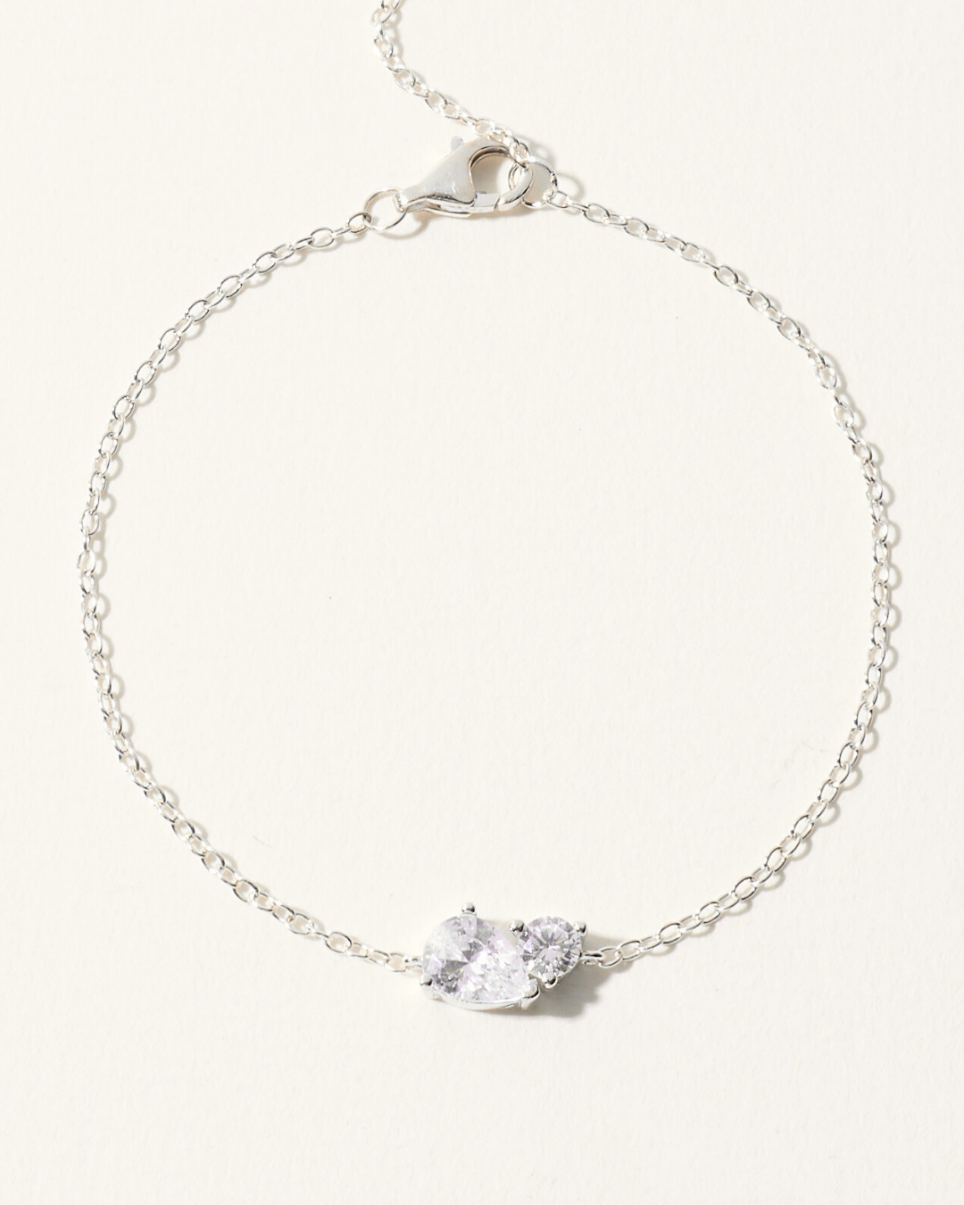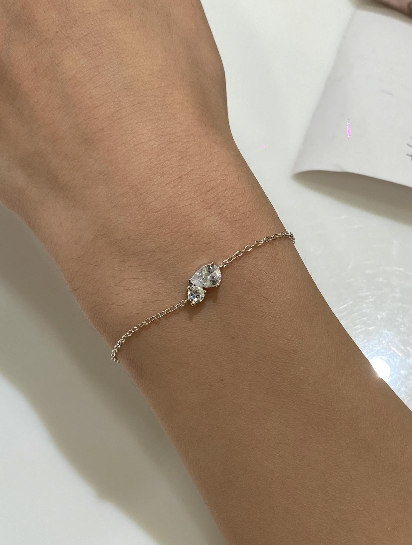- Design: A minimalist chain bracelet featuring two side-by-side, bezel-set stones.
