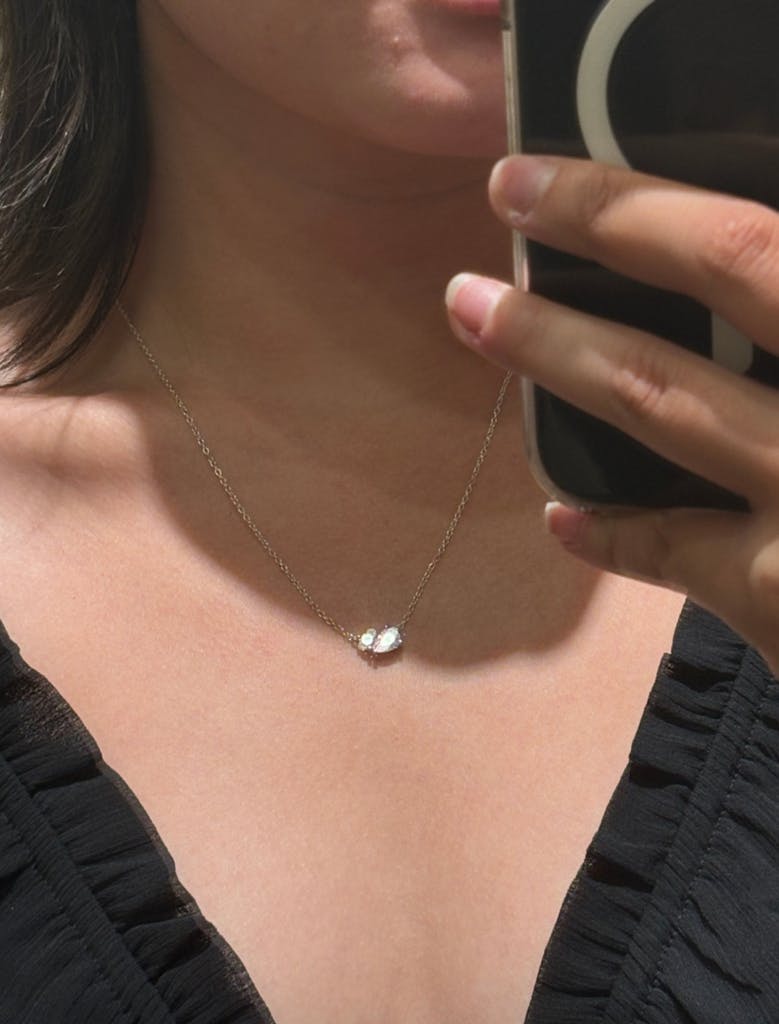 - Design: A minimalist chain necklace featuring two side-by-side, bezel-set stones.