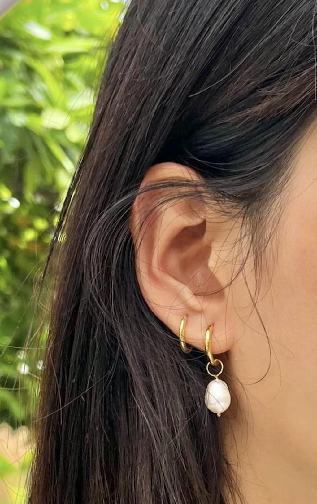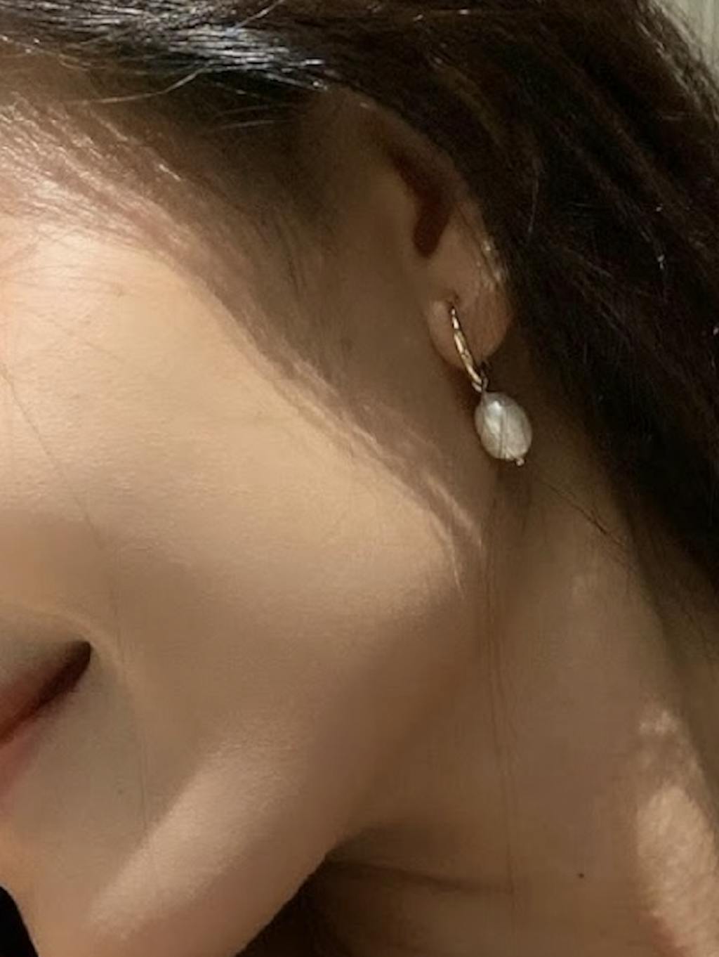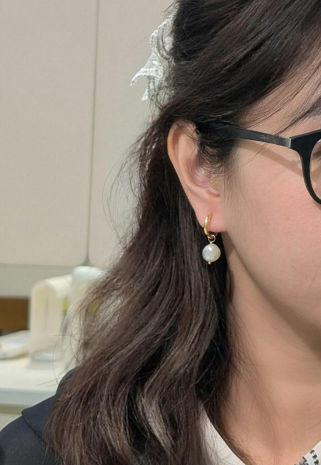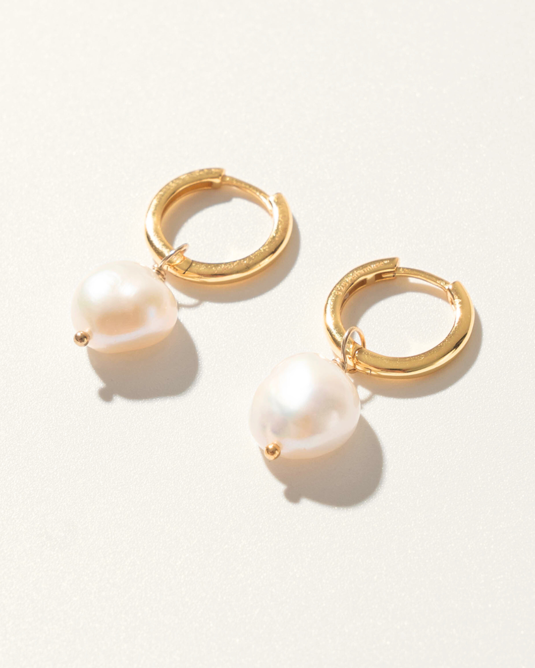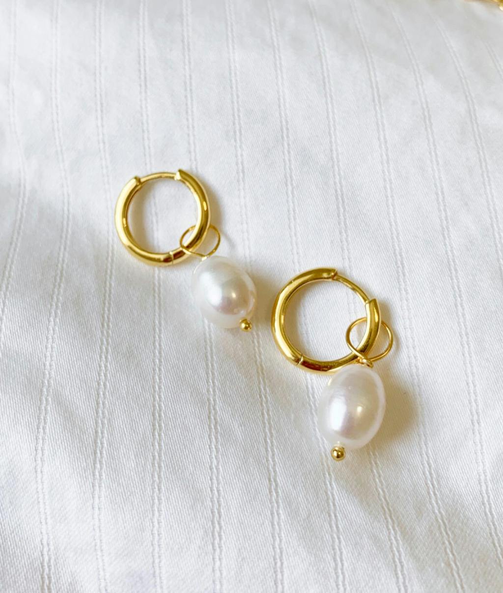 - Design: A classic hoop earring with a single, dangling freshwater pearl.