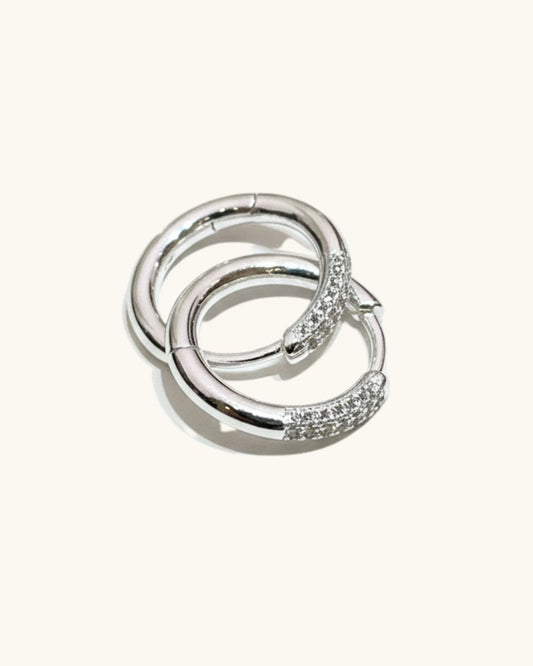 KHUYÊN TAI TRÒN MEDIUM PERLAMUSE BẠC STERLING PAVE ĐÍNH ĐÁ CAO CẤP