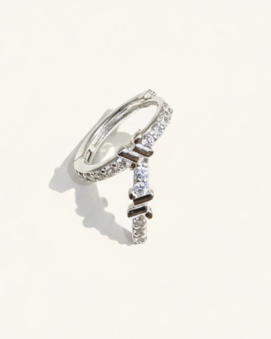 KHUYÊN TAI PERLAMUSE BẠC STERLING MINI TRÒN SHINNING X PAVE