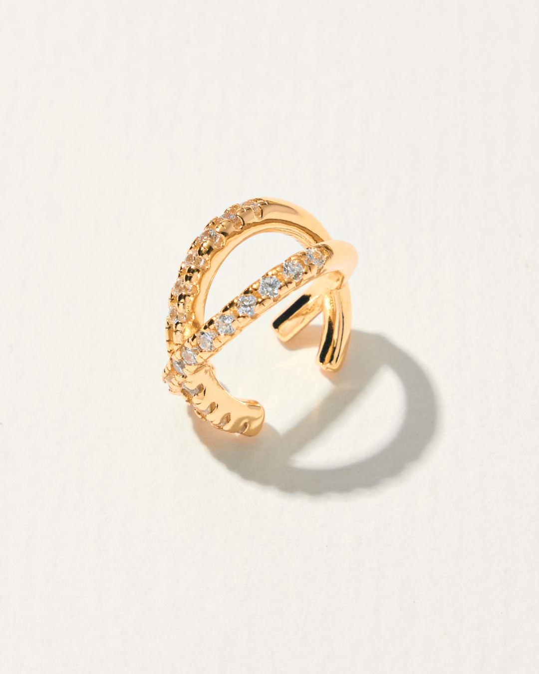 Sẵn sàng để tạo nên tuyên ngôn? Khuyên tai vành Diamond Bold mang đến vẻ ngoài quyến rũ tối đa, với nhiều hàng đá CZ được đính dày đặc để bắt trọn ánh sáng từ mọi góc độ. Chỉ cần kẹp nhẹ lên vành tai—không cần xỏ lỗ—để có ngay một điểm nhấn sang trọng và đầy phá cách.
